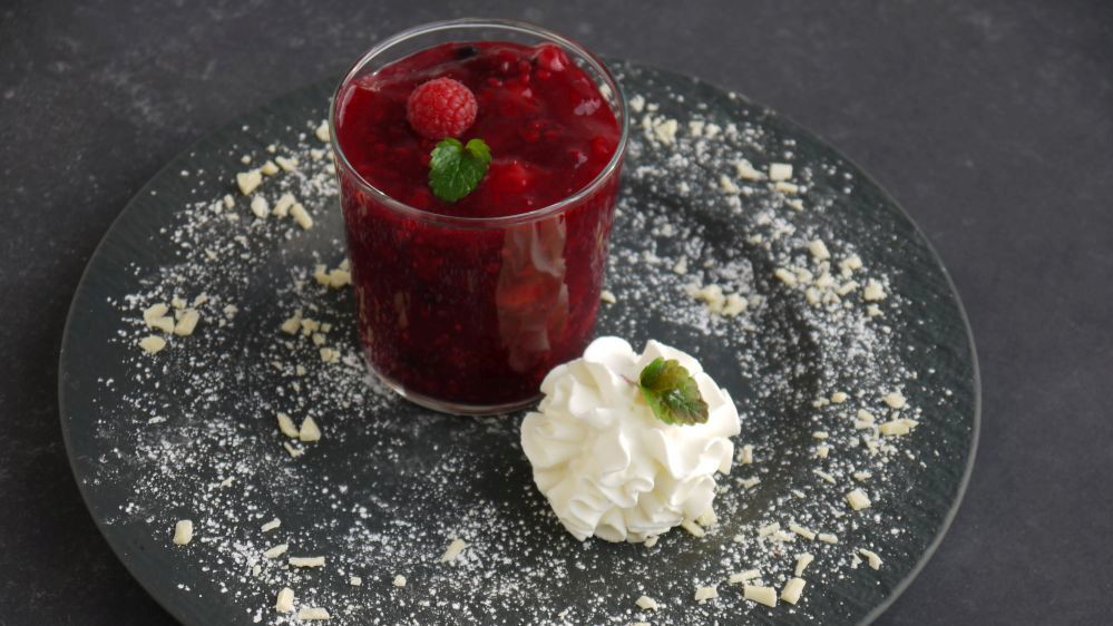 - Den restlichen Nektar mit Zucker aufkochen. Die Stärke unterrühren, aufkochen und mit Fruit & Dessert würzen.