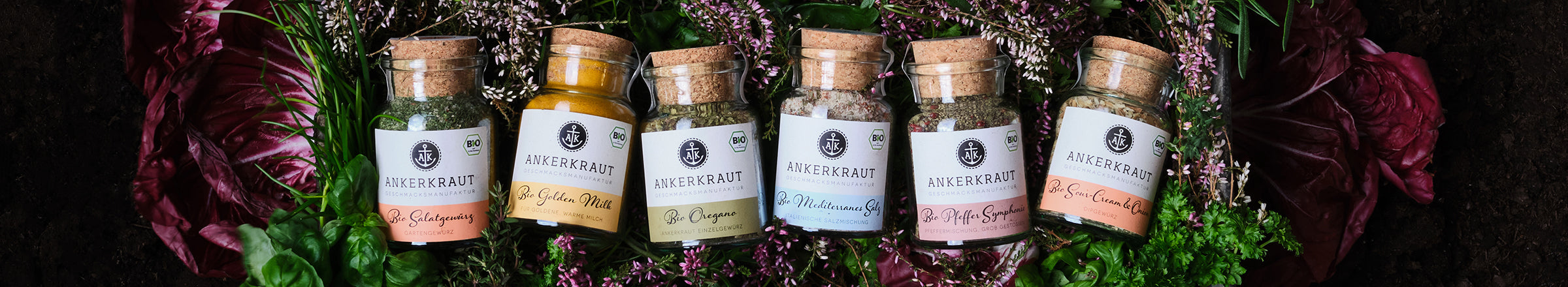 BIO Gewürze sind eine nachhaltige Wahl, die frei von synthetischen Pestiziden und Gentechnik ist. Zudem enthalten diese Gewürze, genau wie alle anderen Gewürze von Ankerkraut, keine künstlichen Aromen oder Zusatzstoffe. So bewahren wir den natürlichen Geschmack und stellen die Qualität der Zutaten in unseren Gewürzmischungen sicher. Zwar tragen nicht alle Ankerkraut Gewürze das BIO-Siegel, aber viele bestehen aus ökologisch angebauten Rohstoffen. Der Zertifizierungsprozess ist leider sehr aufwendig, aber wir arbeiten daran, immer mehr Produkte mit dem BIO-Siegel auszustatten.