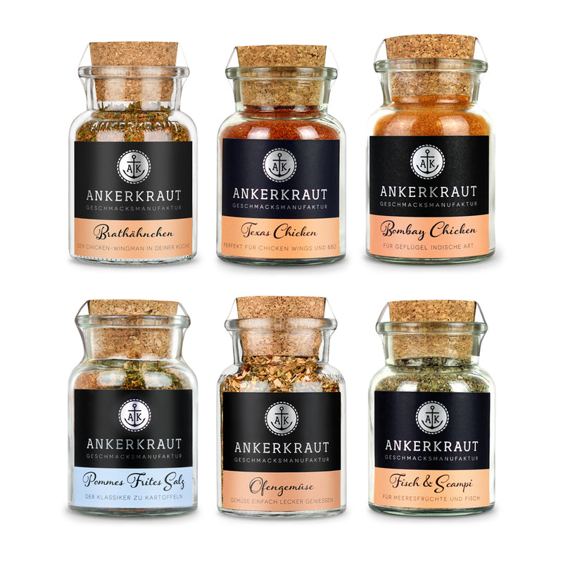 Dieses Air Fry Gewürz Set macht aus deinem Air Fryer einen heißen Tempel des guten Geschmacks. Zauber im Handumdrehen leckeres Hähnchen, Fisch, Gemüse, Pommes und Co. in deinem Airfryer. Immer anders, immer lecker! Du wirst es lieben