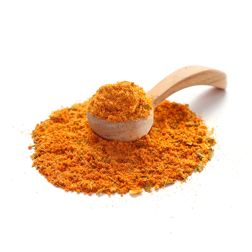 Kurkuma, Meersalz, Paprika edelsüß, Zitronenschale, Knoblauch, Koriandersaat, Bockshornklee, Petersilie, Chilischrot, Fenchel, Cumin, schwarzer Pfeffer, Senfsaat