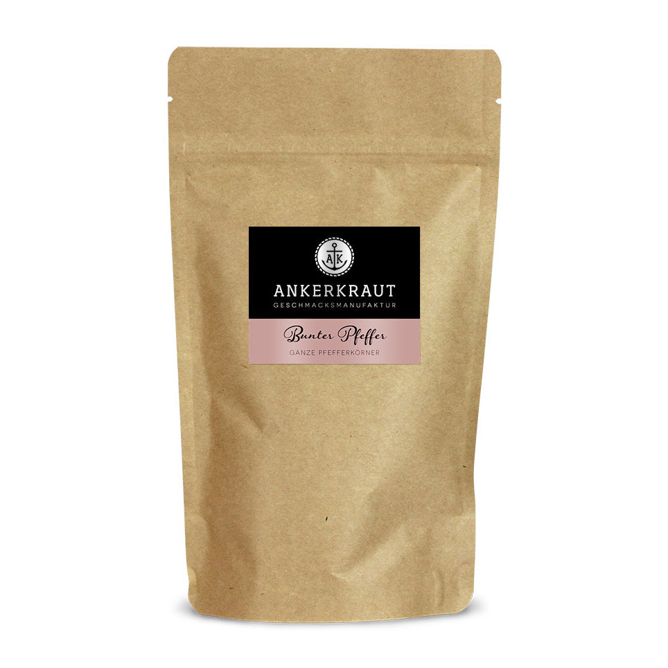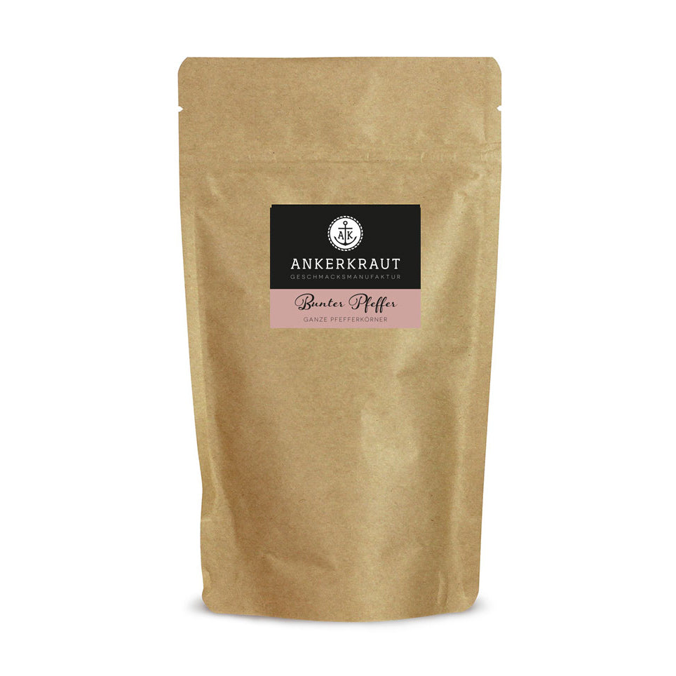 Bunter Pfeffer ist optisch sowie aromatisch eine absolute Besonderheit. Du gibst Gerichten mit dem Pfeffer nicht nur einen unverwechselbaren und speicheltreibenden Look. Vielmehr bescherst du den Gerichten ein Aroma, für das du normalerweise mit diversen Einzelgewürzen hantieren müsstest. Das mühsame Mixen von Einzelgewürzen bleibt dir allerdings hier erspart, denn unser bunter Pfeffer bietet dir auf einen Schlag eine attraktive Komposition aus Aromen.