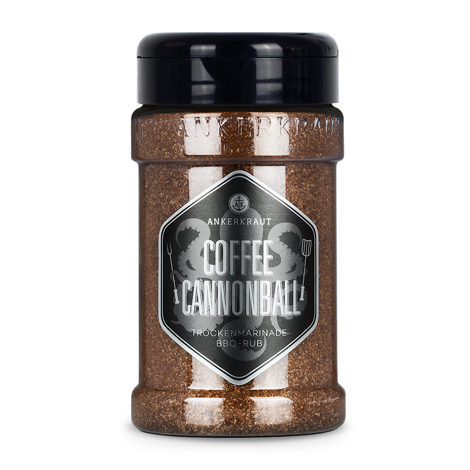 Meersalz, Rohrzucker, schwarzer Pfeffer, geröstete Kaffeebohnen, Knoblauch, Kakaopulver, Instant-Kaffee, Cumin, Paprika geräuchert (Paprika, Rauch), Cayennepfeffer
