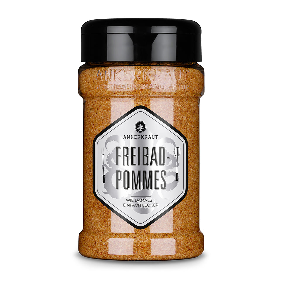 Die besten Pommes gibt es nur im Freibad! Nicht mit uns – das aromatische Freibad Pommes Gewürz ist gemacht, um dich vom Gegenteil zu überzeugen! Schneide deine Kartoffeln in deine liebste Form – ob das nun länglich und schmal oder breit und dick ist – gewürzt mit dieser intensiven Mischung erhältst du köstliche Pommes wie aus dem Freibad! Wenn du es gern noch salziger magst, kannst du dir Salz kaufen und das goldene Glück so abschmecken, wie du es am liebsten hast!