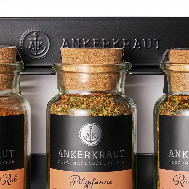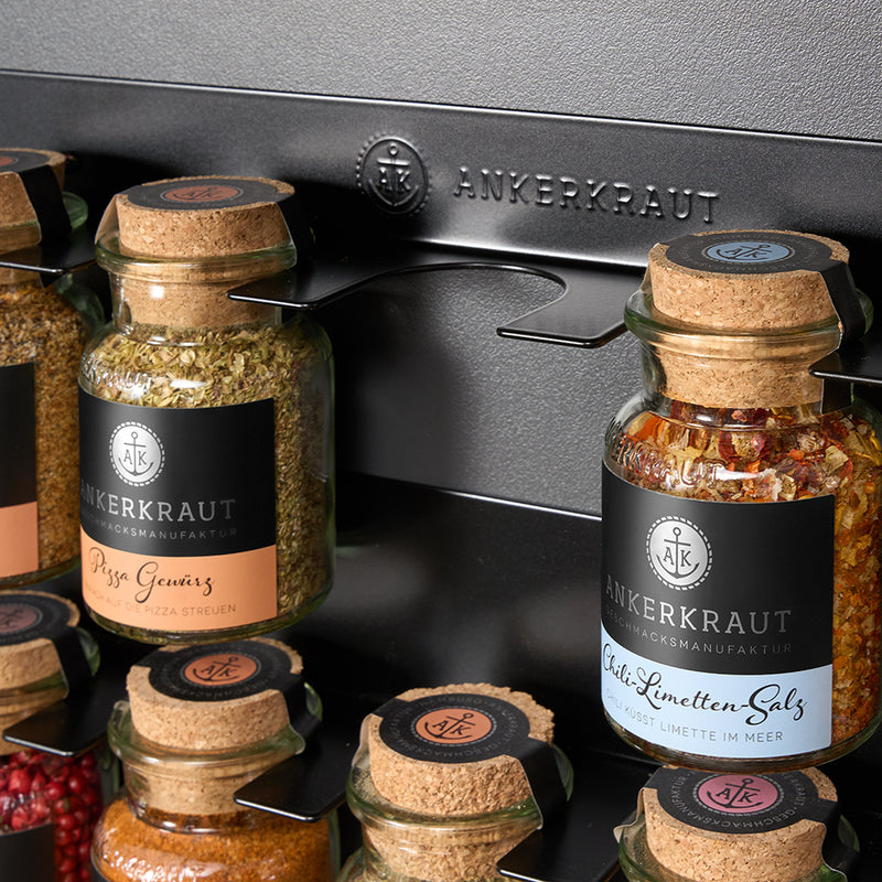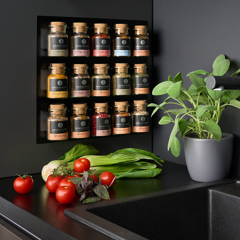 Dein Küchen-Upgrade: 15er Gewürzregal plus 12 Topseller für jeden Geschmack – von Magic Dust bis Hafencurry.