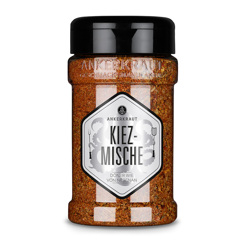 Meersalz, Paprika edelsüß, Chilischrot, Knoblauch, schwarzer Pfeffer, Oregano, Kreuzkümmel, Basilikum