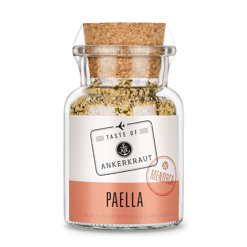 Du möchtest eine Paella demnächst selbst kochen und deinen Freunden servieren? Dann darf eins nicht fehlen: Das originale spanische Paella Gewürz von Ankerkraut – ganz ohne Zuckerzusatz, aber mit einer Zutat, die unabdingbar ist: Safran. Unser Paella Gewürz verleiht deinem Pfannengericht nicht nur eine herrliche goldene Farbe, sondern auch ein unverwechselbares, leicht bitter-süßliches Aroma.
