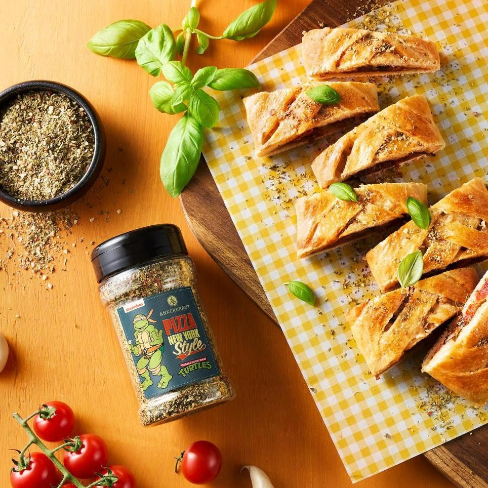 „Keep calm and eat pizza!“ Das lassen sich die vier Teenage Mutant Ninja Turtles Leo, Donnie, Raph und Mikey bestimmt nicht nochmal sagen.