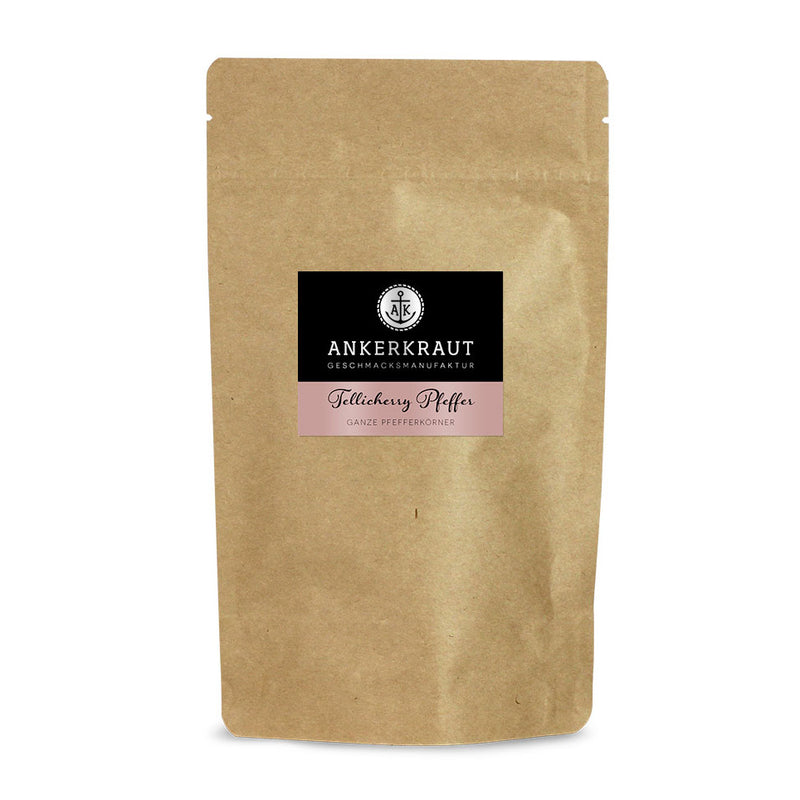 Unser Tellicherry-Pfeffer ist, wie die anderen Gewürze von Ankerkraut, frei von jeglichen künstlichen Zusatzstoffen und Geschmacksverstärkern. Nur die besten, natürlich gereiften Pfefferbeeren aus Tellicherry schaffen es in unsere nachhaltigen Verpackungen, um dann als ganze Pfefferkörner ihr volles Aroma in deinen Lieblingsspeisen zu entfalten.