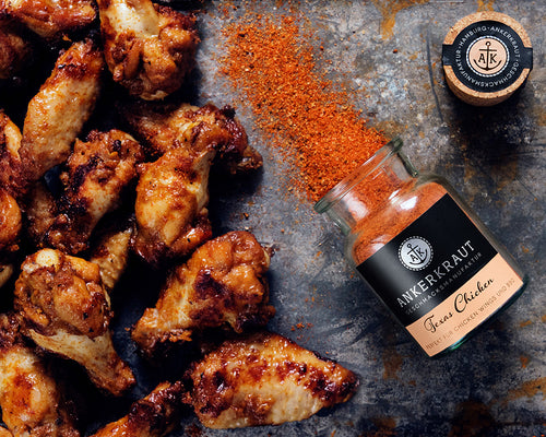 Diese einzigartige Gewürzmischung von Ankerkraut veredelt mit seinen würzig-wilden texanischen Aromen knusprige Hähnchenkeulen, saftige Drumsticks oder würzige Chicken Wings hervorragend.