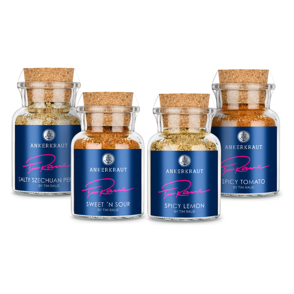 Aller guten Dinge sind … VIER! Das weiß auch 2-Sterne-Koch Tim Raue : bombastisch, hochwertig und voller außergewöhnlicher Aromen. Mit diesen Gewürzen geht’s rund im Topf!