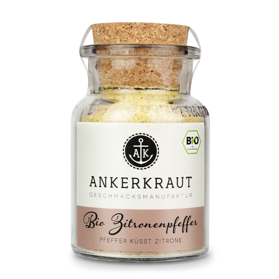 Da liegt die Zitrone im Pfeffer: In diesem Korkengläschen treffen sich der pikante Pfeffer und die spritzige Zitrone zu einem Rendezvous.